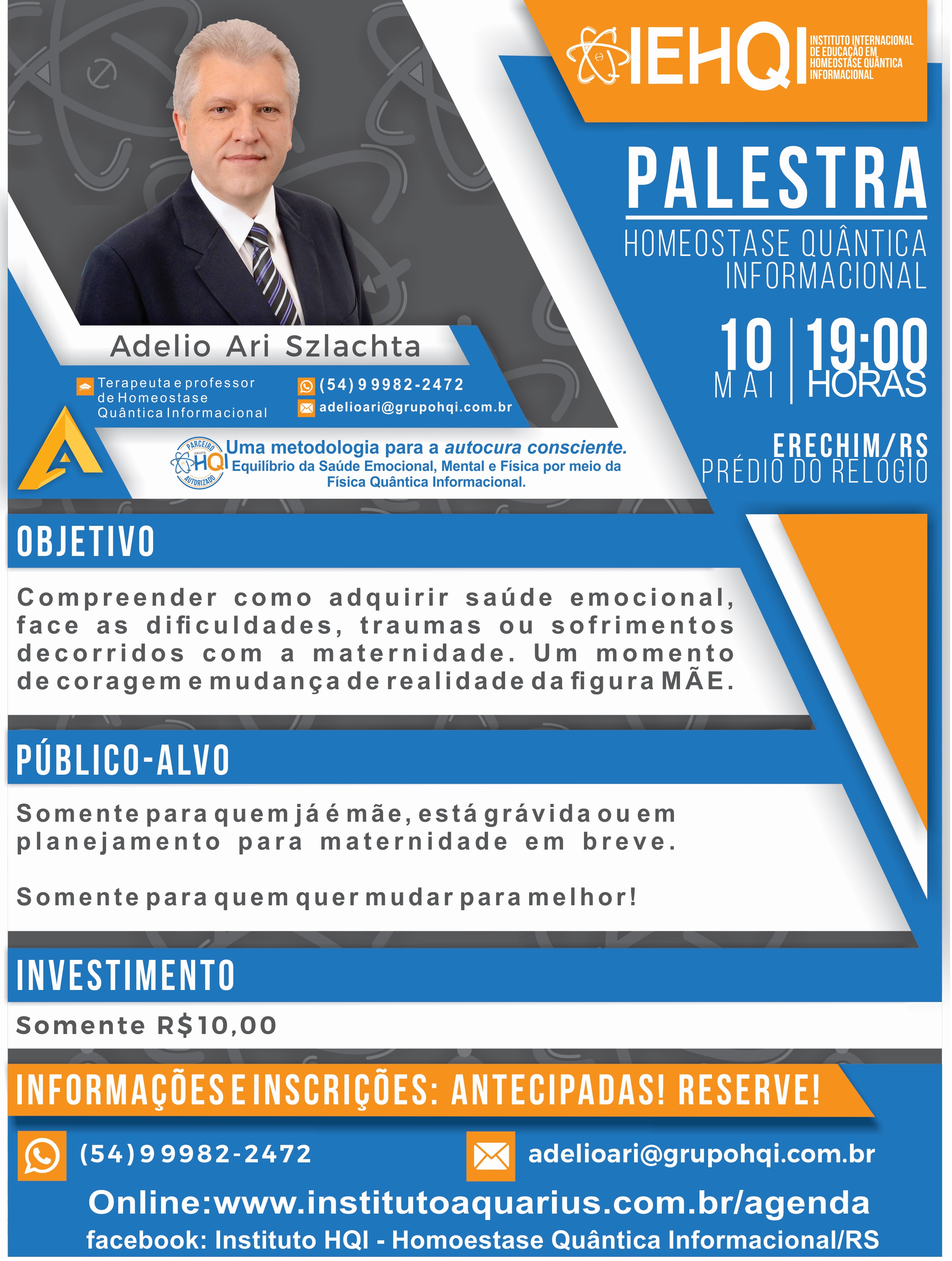 Erechim/RS - Palestra - Dia das MÃES - Homeostase Quântica Informacional - Dia 10/05/18 - Prof. Adelio Ari Szlachta