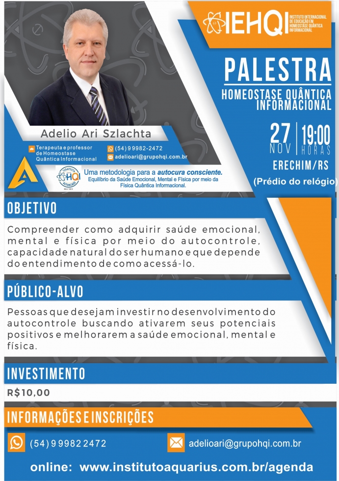 Erechim/RS - Palestra de Homeostase Quântica Informacional - Dia 27/11/18 - Prof. e Terapeuta Adelio Ari Szlachta