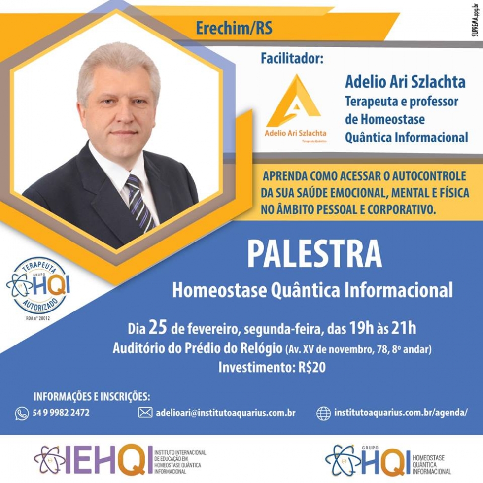 O Instituto HQI - Homeostase Quântica Informacional / RS promove palestra de Homeostase Quântica Informacional - com o Prof. e Terapeuta Autorizado, Adelio Ari Szlachta.
