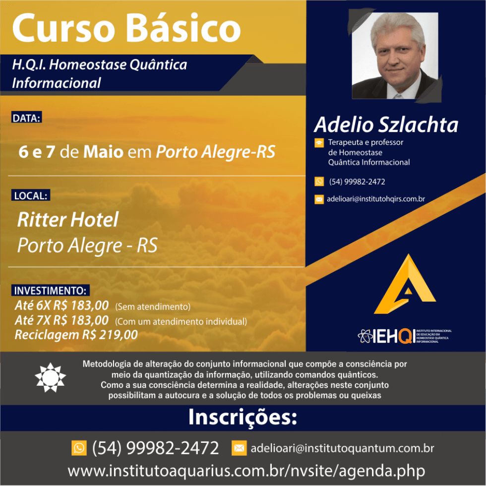 É uma METODOLOGIA de alteração do conjunto informacional da sua consciência, por meio da quantização, utilizando comandos quânticos. Como a sua consciência determina sua realidade, alterações neste conjunto, possibilita a AUTOCURA e a resolução de todos os seus problemas ou queixas. Esta metodologia está fundamentada cientificamente pelas teorias da Física Quântica Informacional(Física da Informação)!.