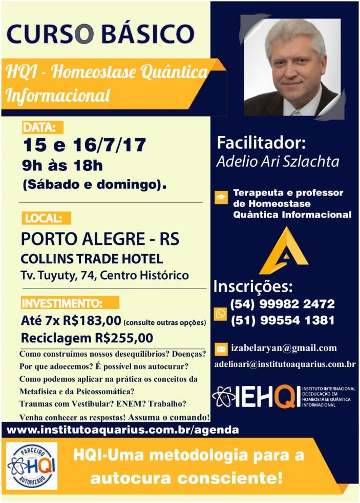 Porto Alegre/RS - Curso Básico de Homeostase Quântica Informacional - Dias 15 e 16/07/17 - Prof. Adelio Ari Szlachta