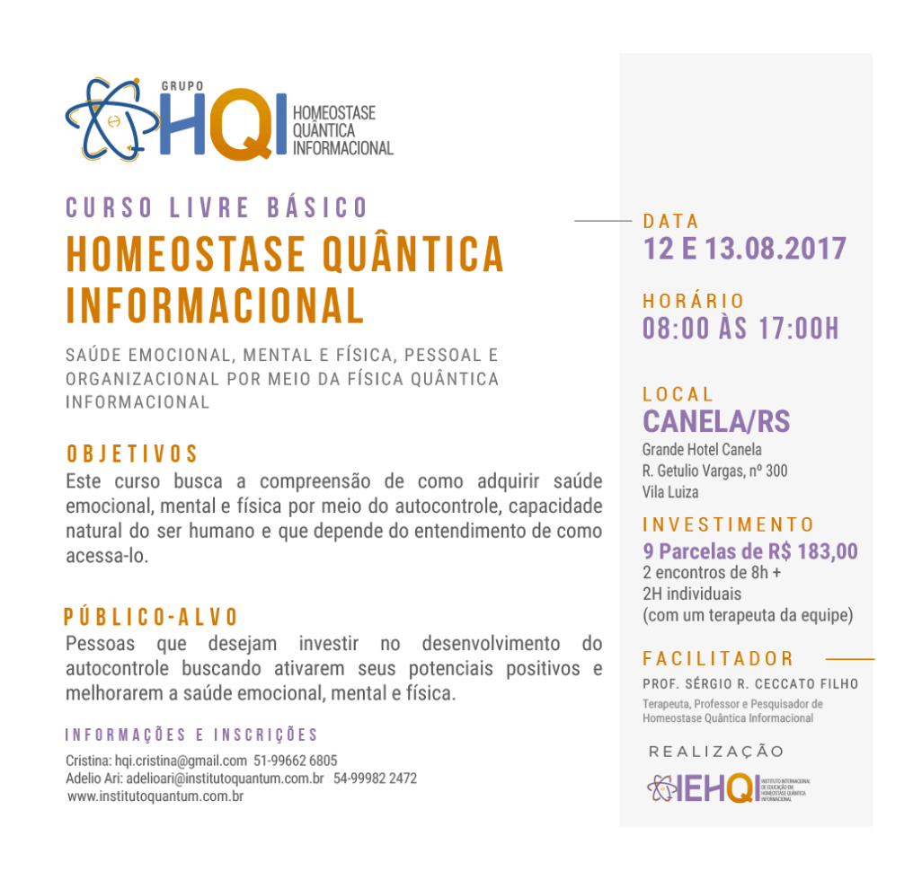 Canela/RS - Curso Básico de Homeostase Quântica Informacional - Dias 12 e 13/08/17 - Prof. Sergio Roberto Ceccato Filho