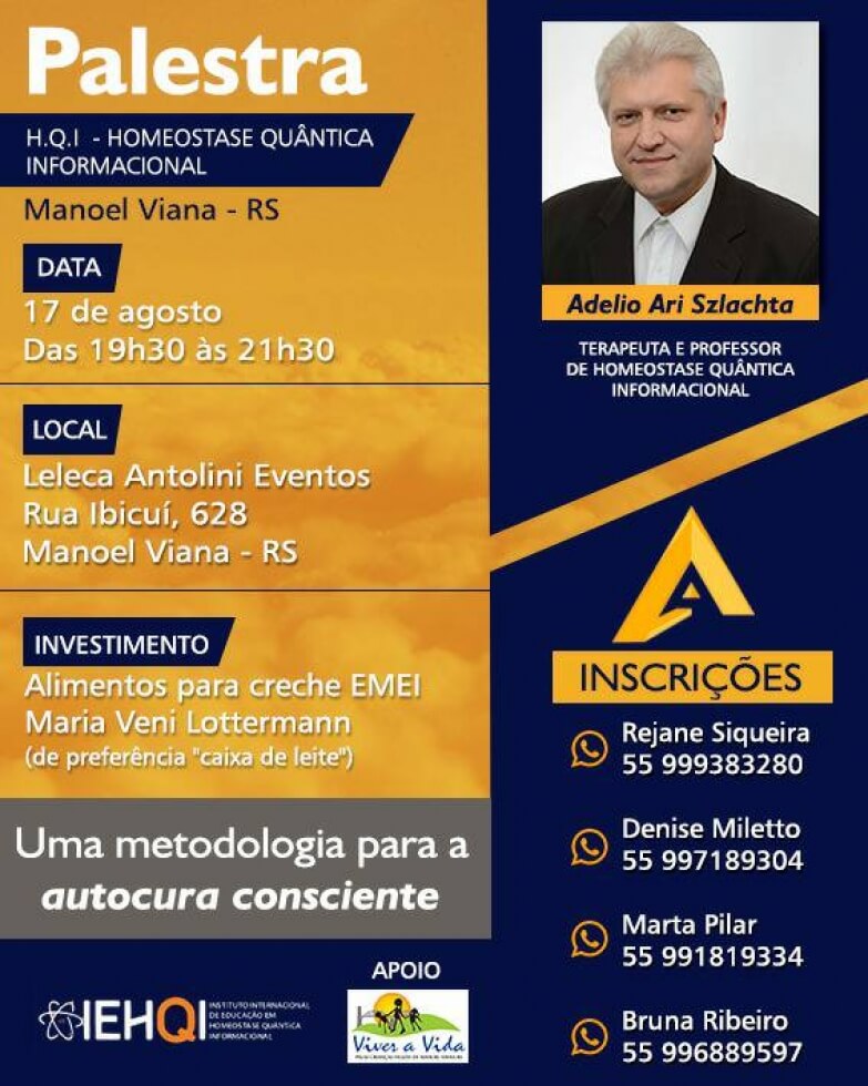 Manoel Viana/RS - Palestra de Homeostase Quântica Informacional - Dia 17/08/17 - Prof. Adelio Ari Szlachta