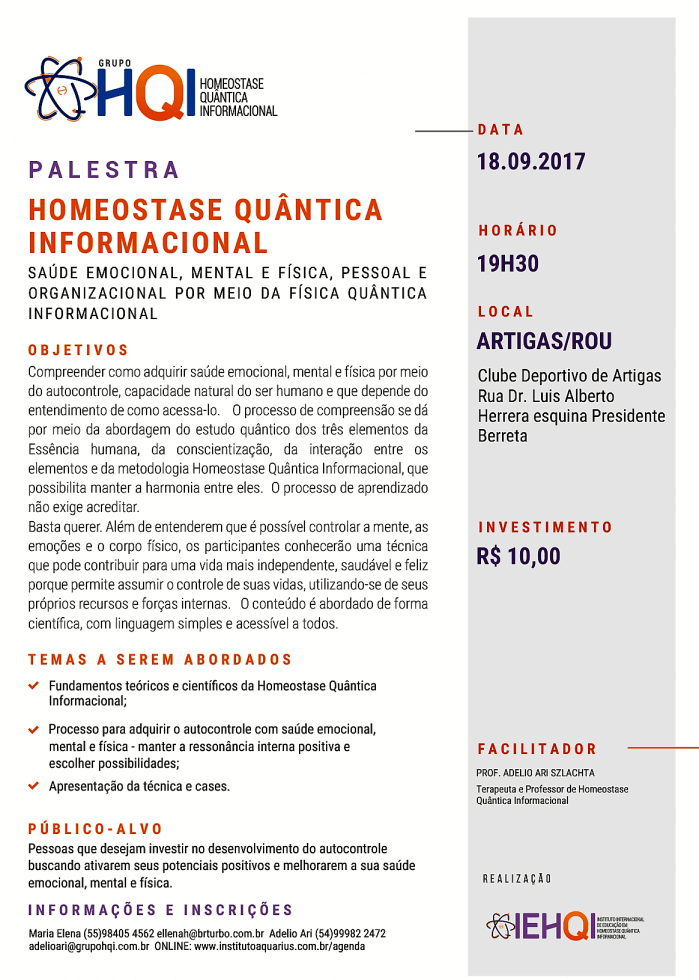 Artigas/Uruguai - Palestra de Homeostase Quântica Informacional - Dia 18/09/17 - Prof. Adelio Ari Szlachta