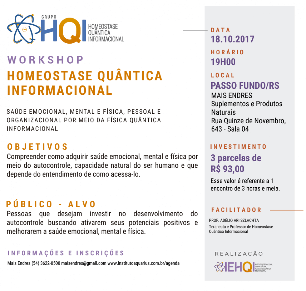 Passo Fundo/RS - Workshop de Homeostase Quântica Informacional - FOCO no EMOCIONAL - Dia 18/10/17 - Prof. Adelio Ari Szlachta