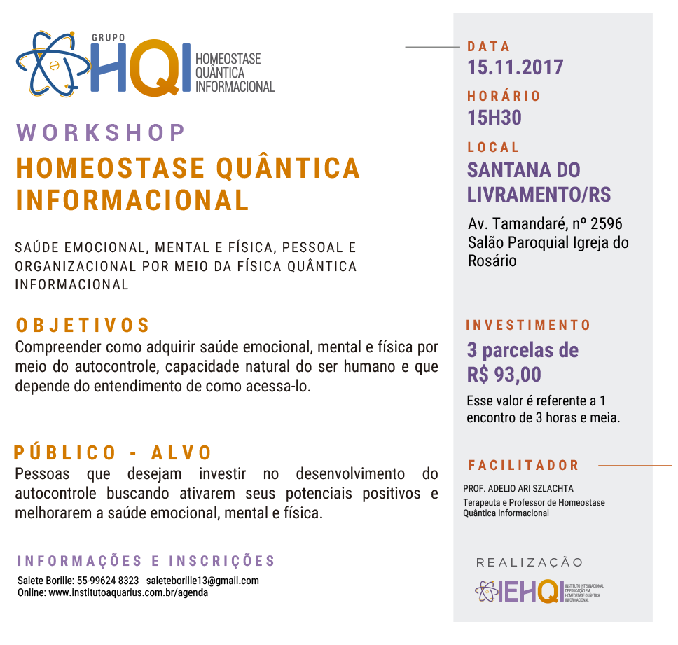 Santana do Livramento/RS - Workshop Equilíbrio Emocional por meio da HQI - Dia 15/11/17- Prof. Adelio Ari Szlachta