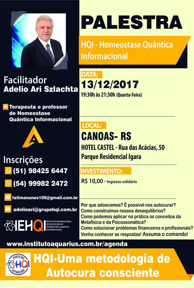 Canoas/RS - Palestra de Homeostase Quântica Informacional - Dia 13/12/17 - Prof. Adelio Ari Szlachta