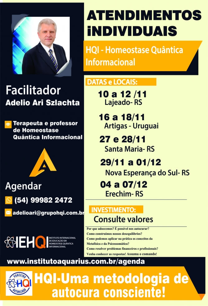 Atendimentos Individuais de Homeostase Quântica Informacional - Terapeuta e Prof. Adelio Ari Szlachta