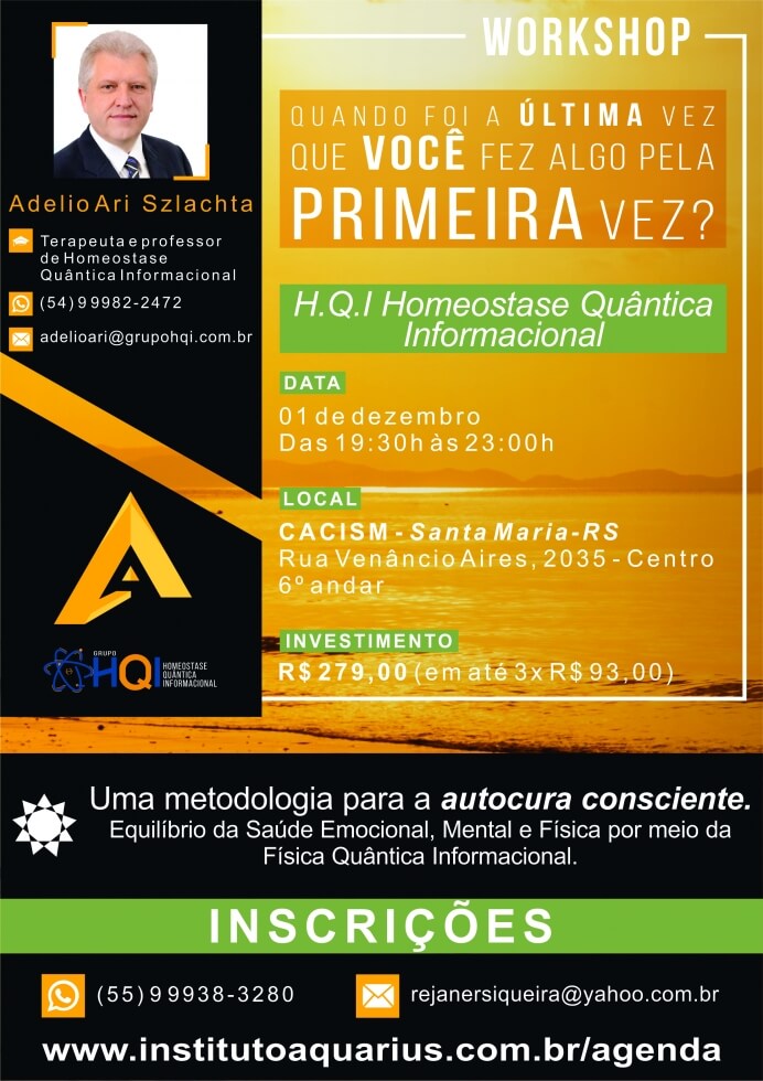 Santa Maria/RS - Workshop HQI - Equilíbrio Emocional - Dia 01/12/17 - Terapeuta e Prof. Adelio Ari Szlachta