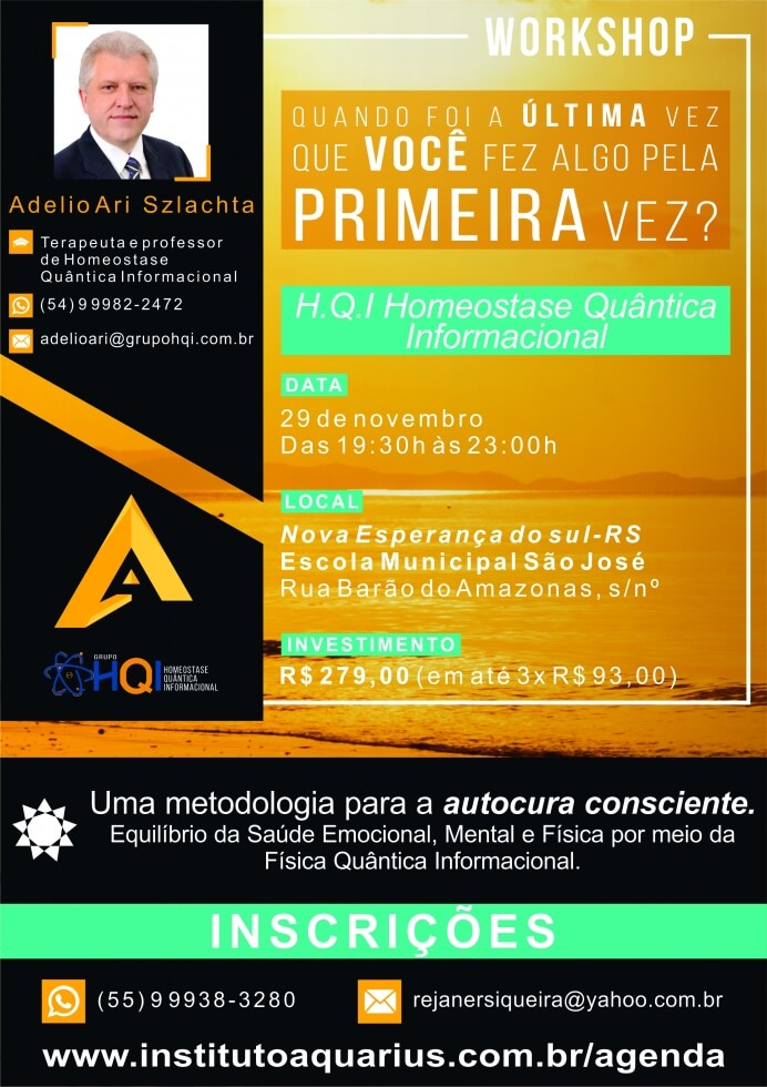 Nova Esperança do Sul/RS - Workshop HQI - Equilíbrio Emocional - Dia 29/11/17 - Terapeuta e prof. Adelio Ari Szlachta
