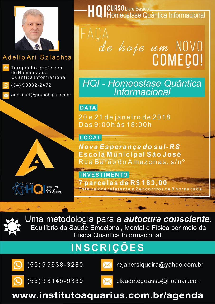 Nova Esperança do Sul/RS - Curso Livre Básico de Homoestase Quântica Informacional - Dias 20 e 21/01/18 - Prof. Adelio Ari Szlachta