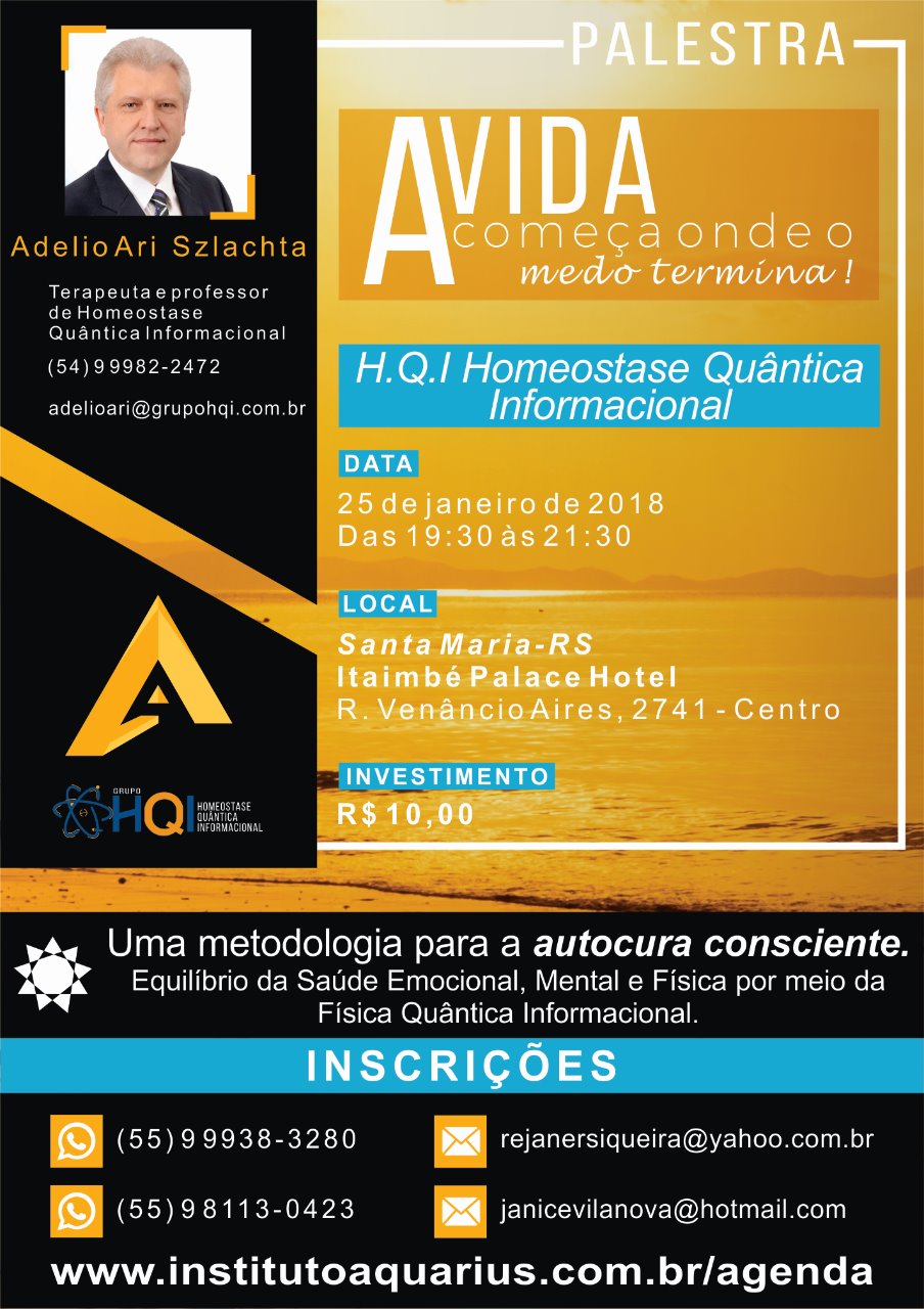 Santa Maria/RS - Palestra de Homeostase Quântica Informacional - Dia 25/01/18 - Prof. Adelio Ari Szlachta