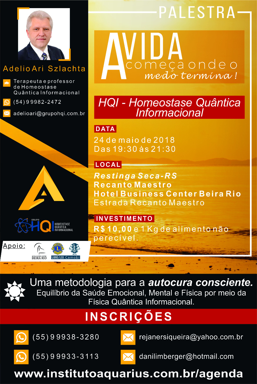 Restinga Seca/RS (Recanto Maestro) - Palestra de Homeostase Quântica Informacional - Dia 24/05/18 - Prof. Adelio Ari Szlachta