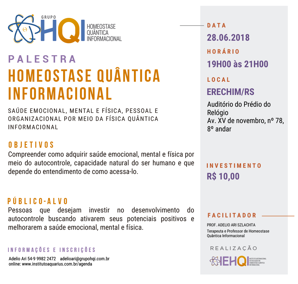 Erechim/RS - Palestra - Homeostase Quântica Informacional - Dia 28/06/18 - Prof. Adelio Ari Szlachta